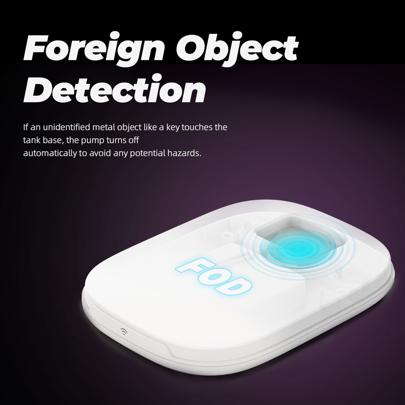 Automatically shuts off the pump if unidentified metal objects like keys touch the tank base, preventing potential hazards.