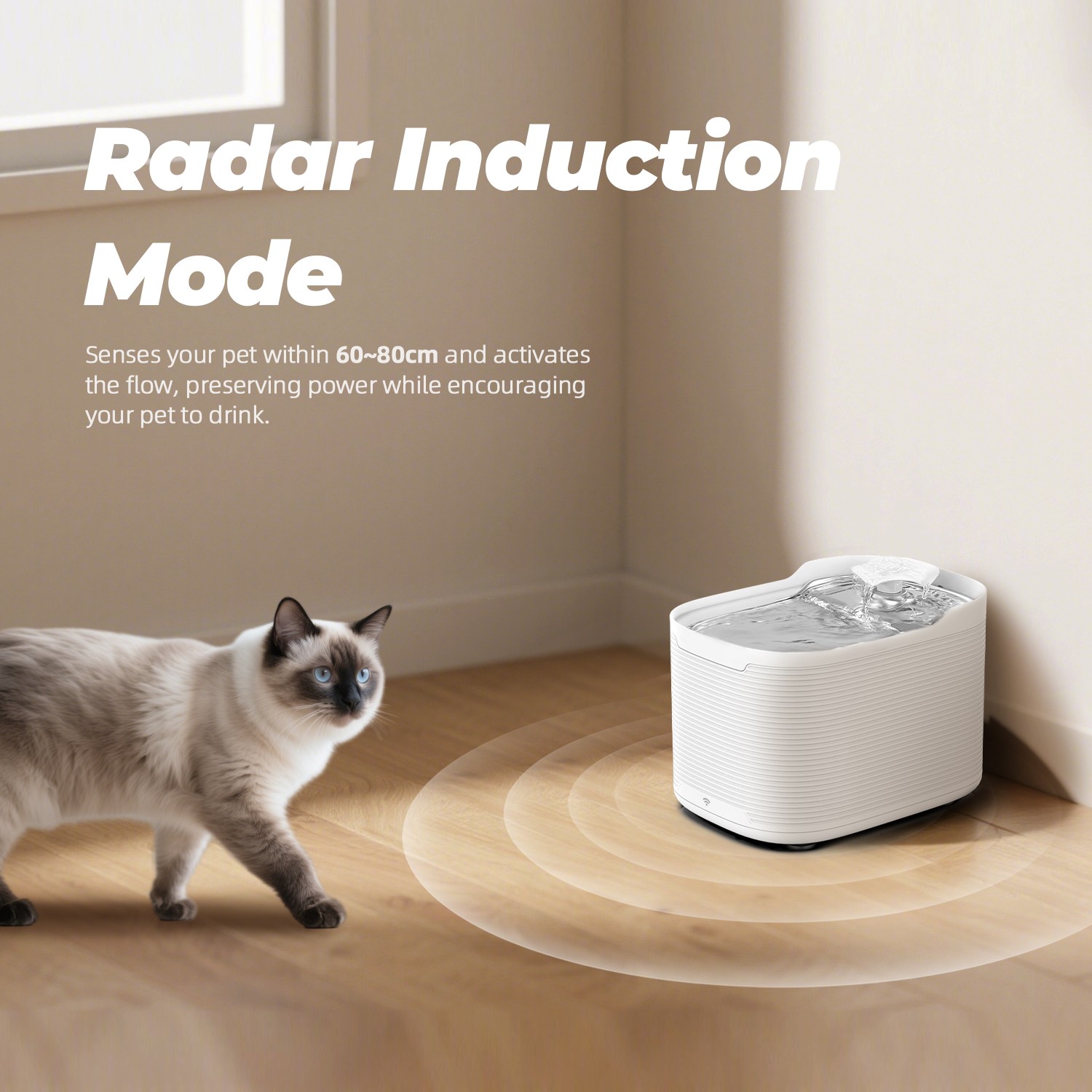 Keep your pets healthy and hydrated with the Tikpaws Smart Water Fountain. This 2.5L battery-powered fountain features radar sensing, weight detection, and continuous fresh water circulation—designed for safe, reliable, and stress-free hydration 24/7.