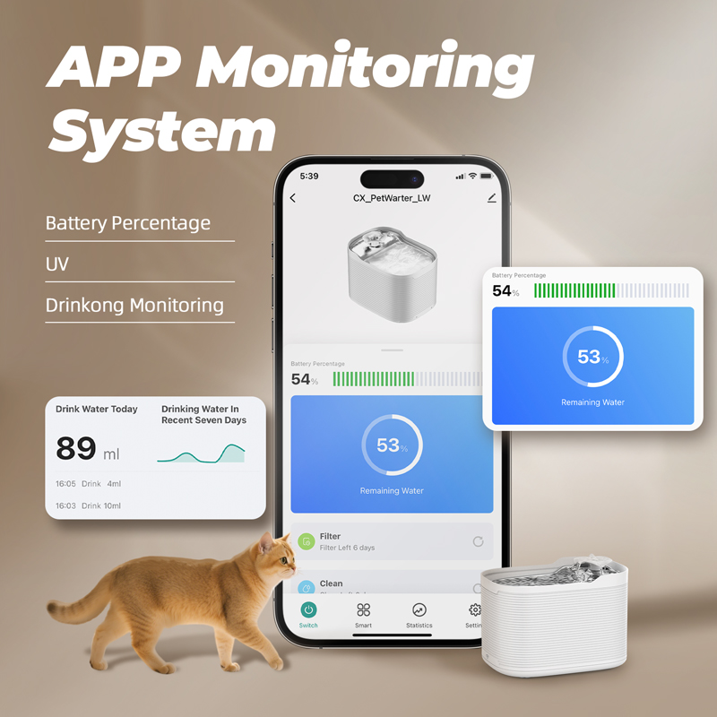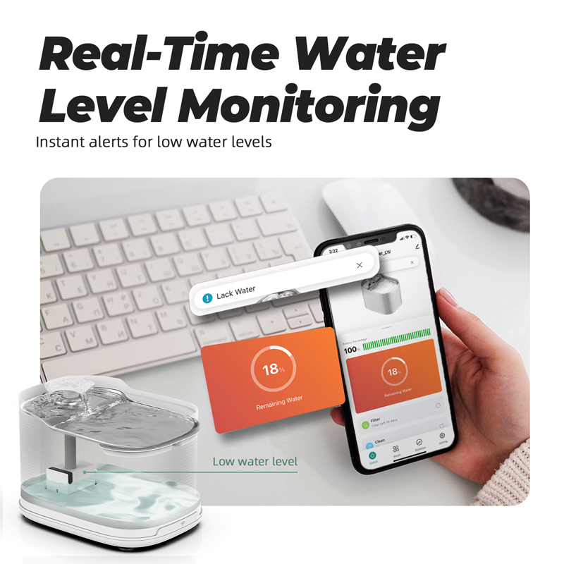 Instant alerts for low water levels sent directly to your smartphone, ensuring your pet never runs out of water.